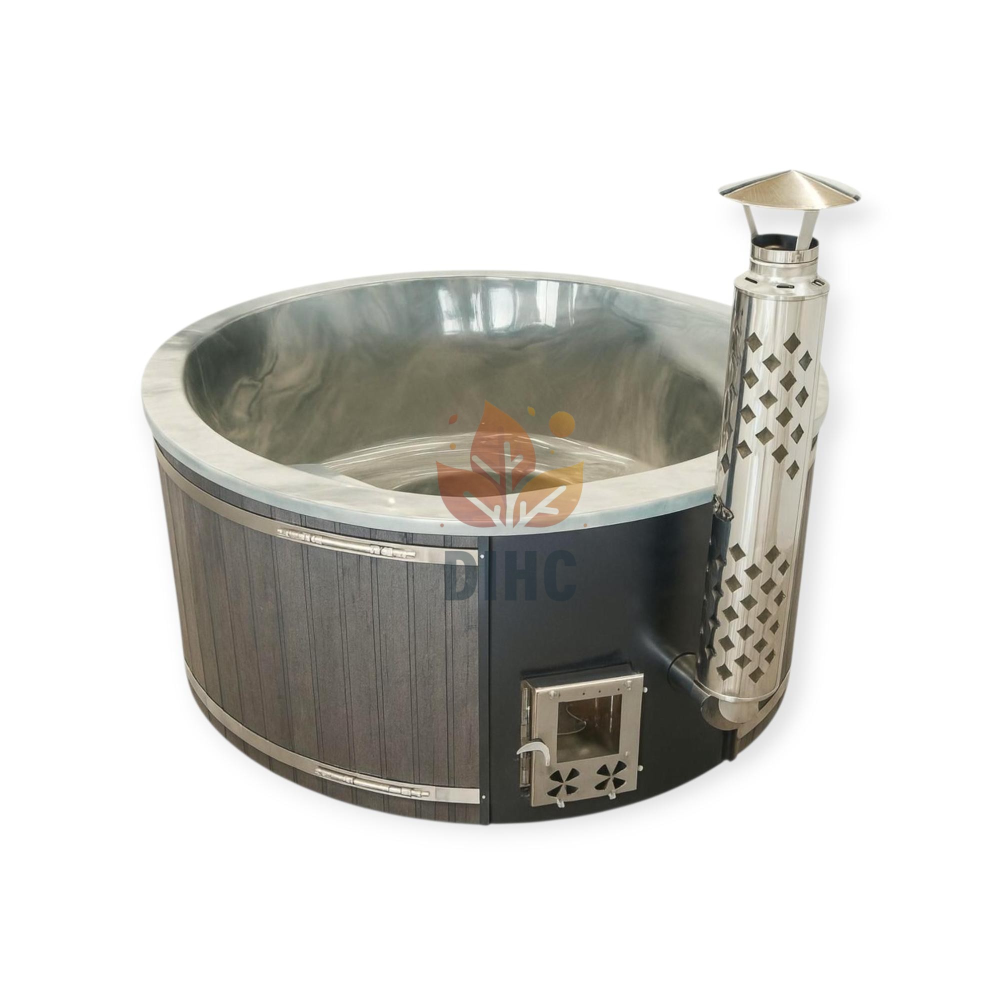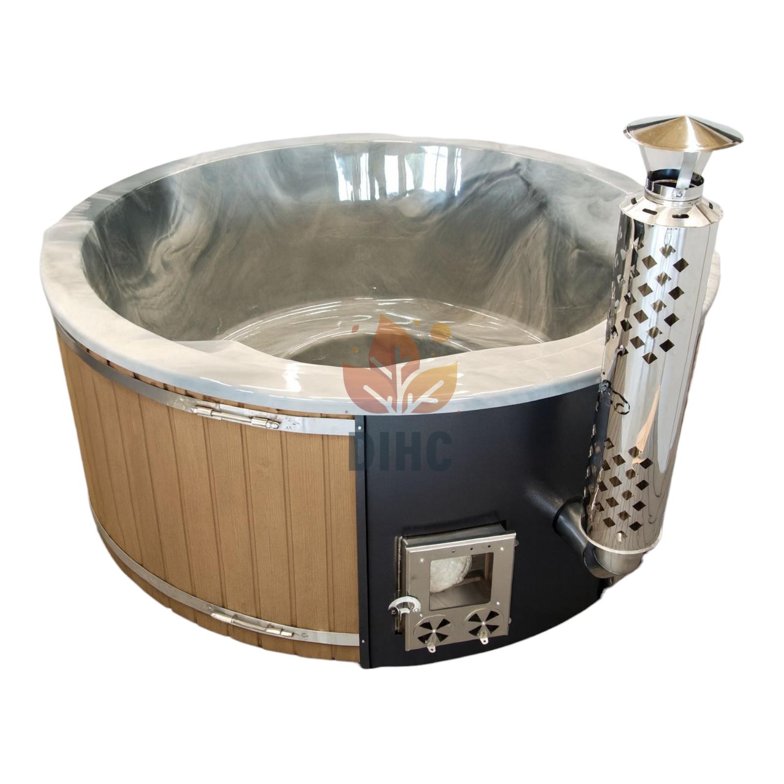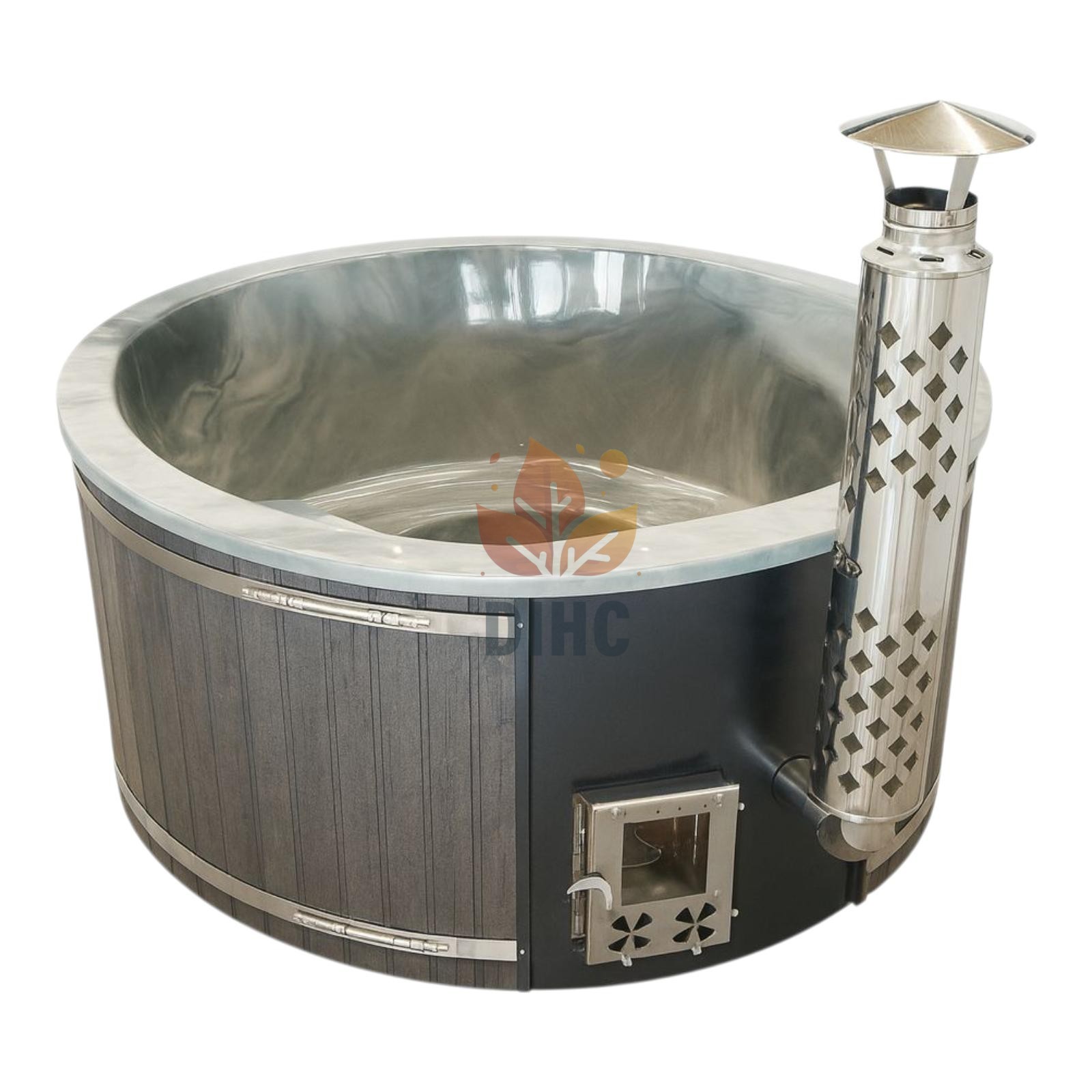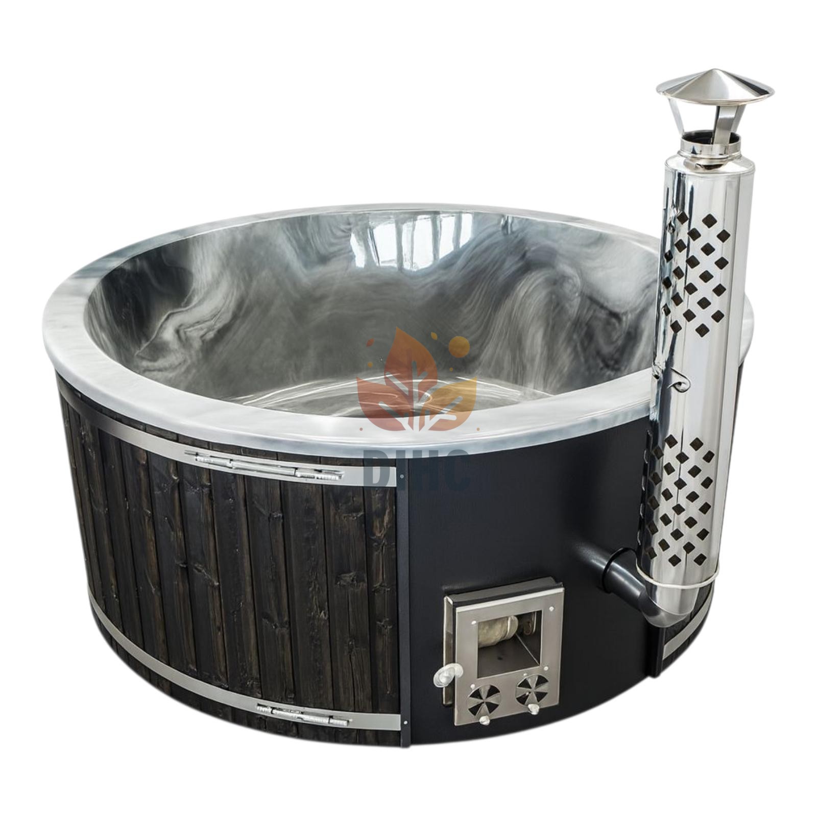 Opplev ren komfort og moderne design med vår badestamp med akrylinnsats i størrelsene Ø1.8 m / Ø2.0 m, utviklet for opptil 5 personer. Den eksklusive akrylinnsatsen gir både høy holdbarhet og elegant finish. Badestampen er vedfyrt og leveres med en integrert 30 kW vedovn i rustfritt stål (AISI 304), 2 meter skorstein med regnhatt samt nødvendig tilbehør som padle og utvendige tretrapper.