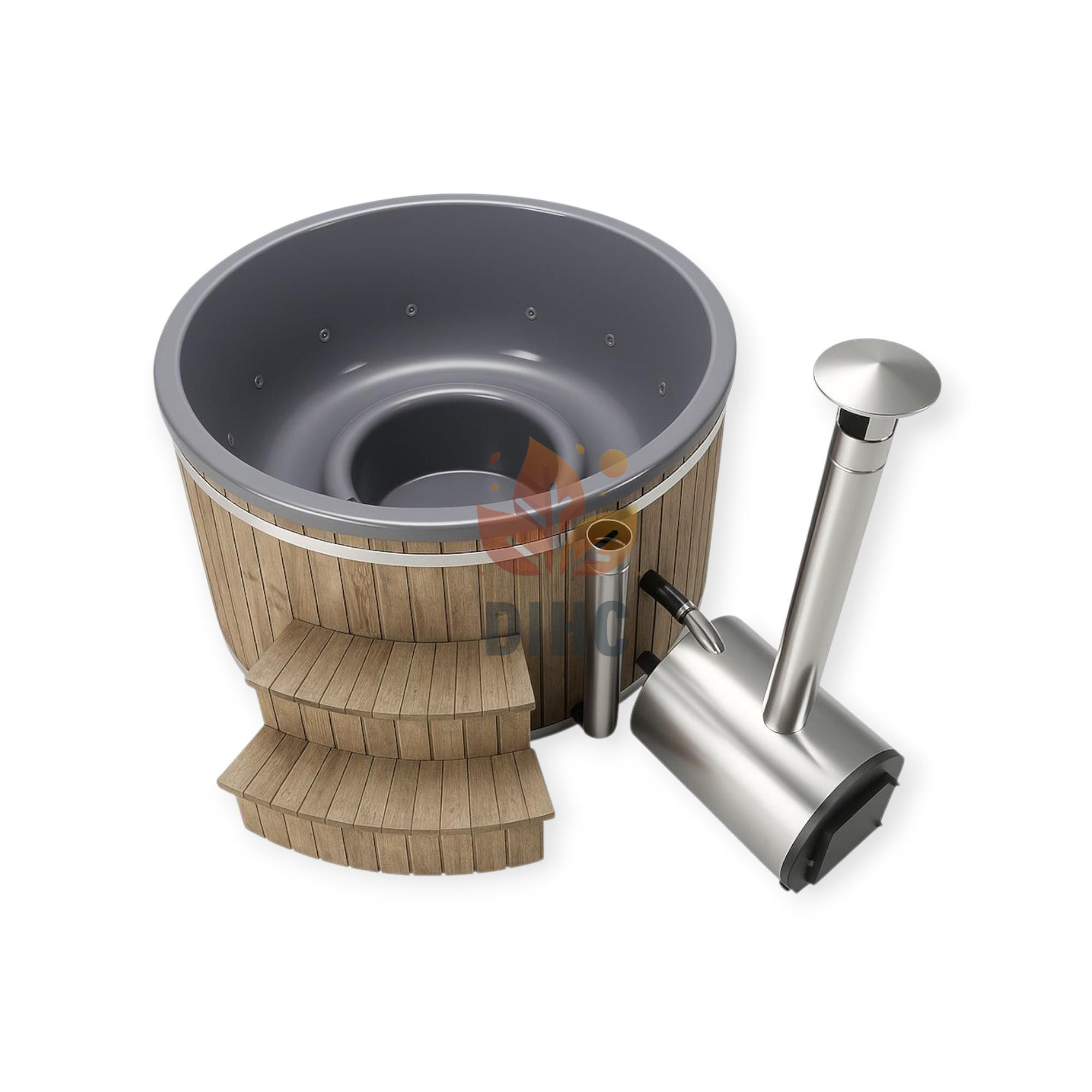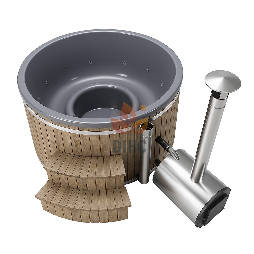 🪵 Badestamp med ekstern ovn – Elegant design i tre og rustfritt stål 304