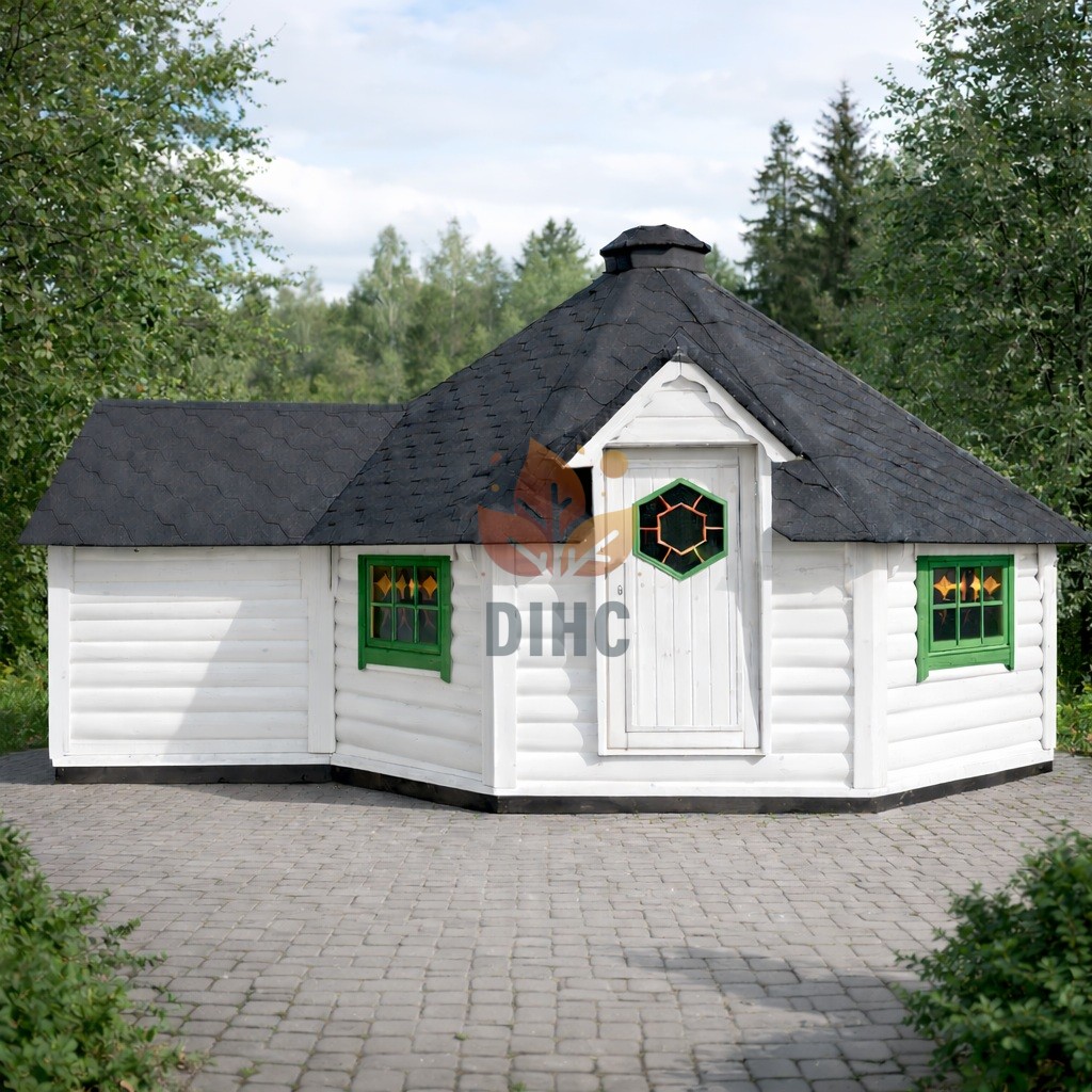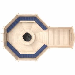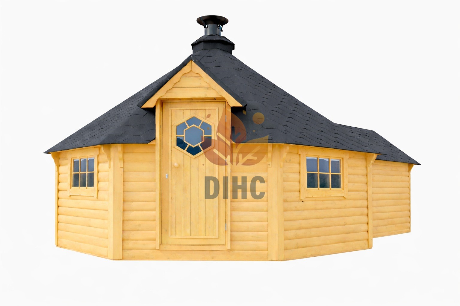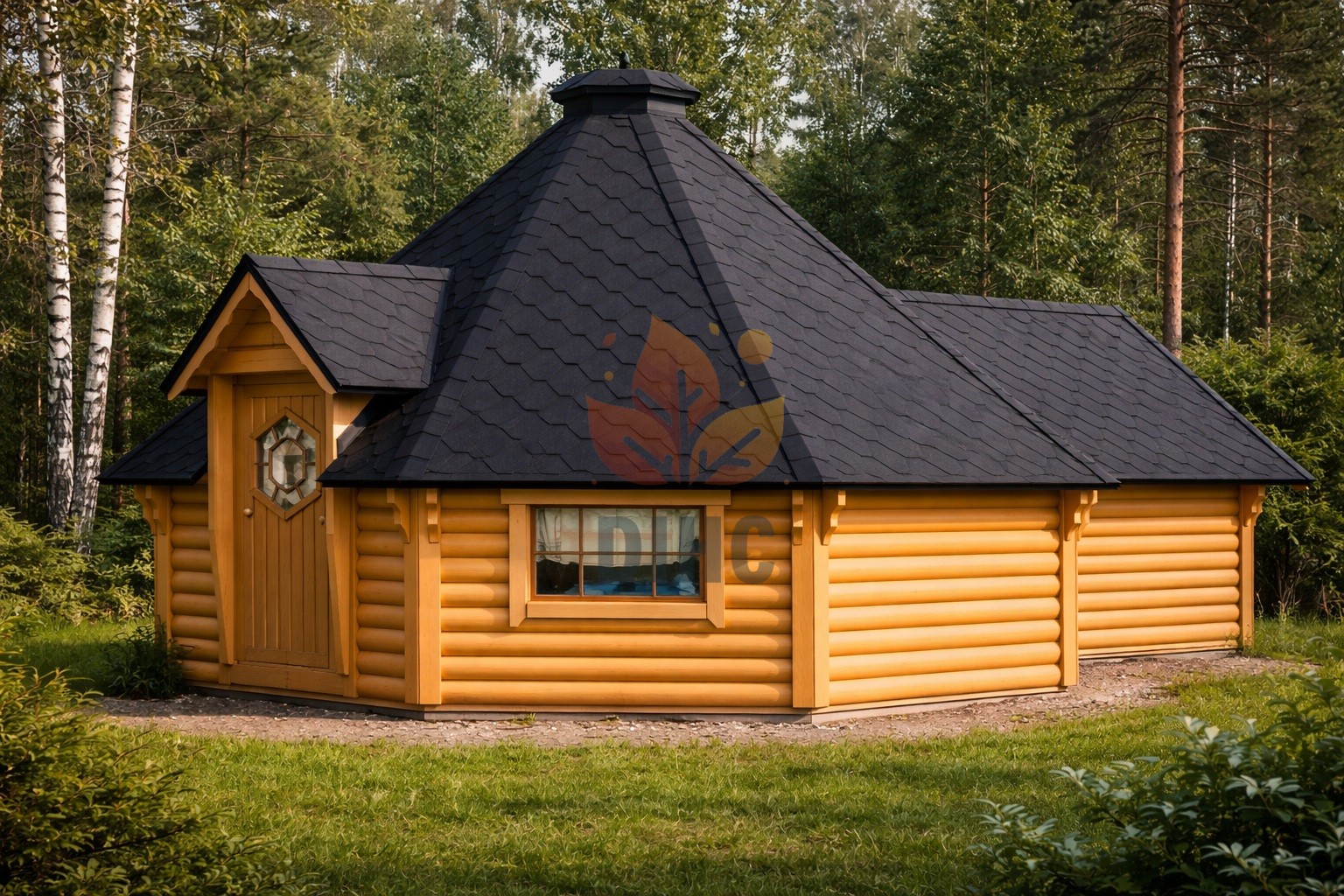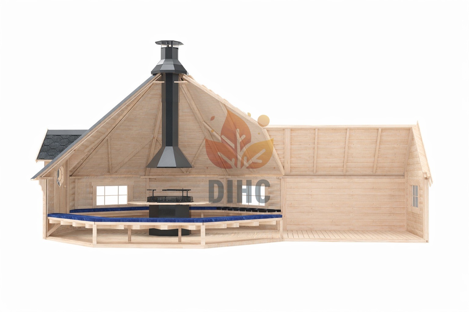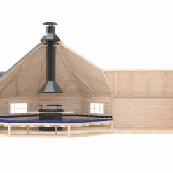 Grillhytte 16,5 m² med 2,5 m tilbygg er en klassisk finsk grillhytte som skaper varme, hygge og fellesskap i hagen – hele året.