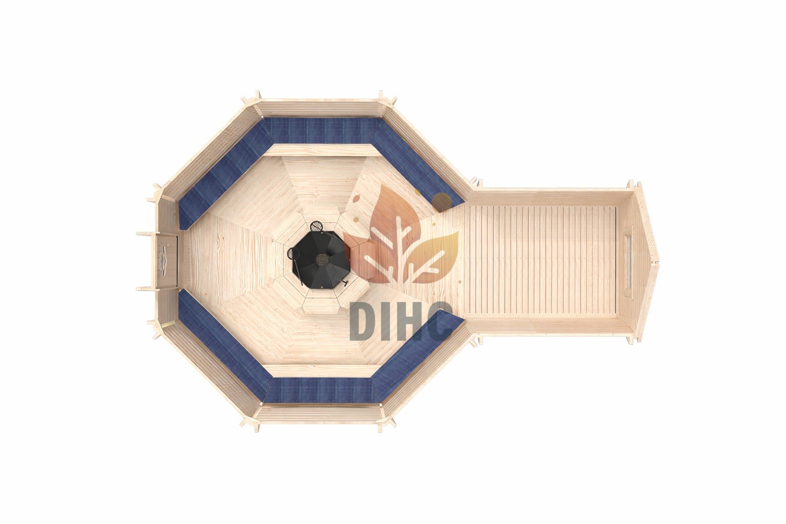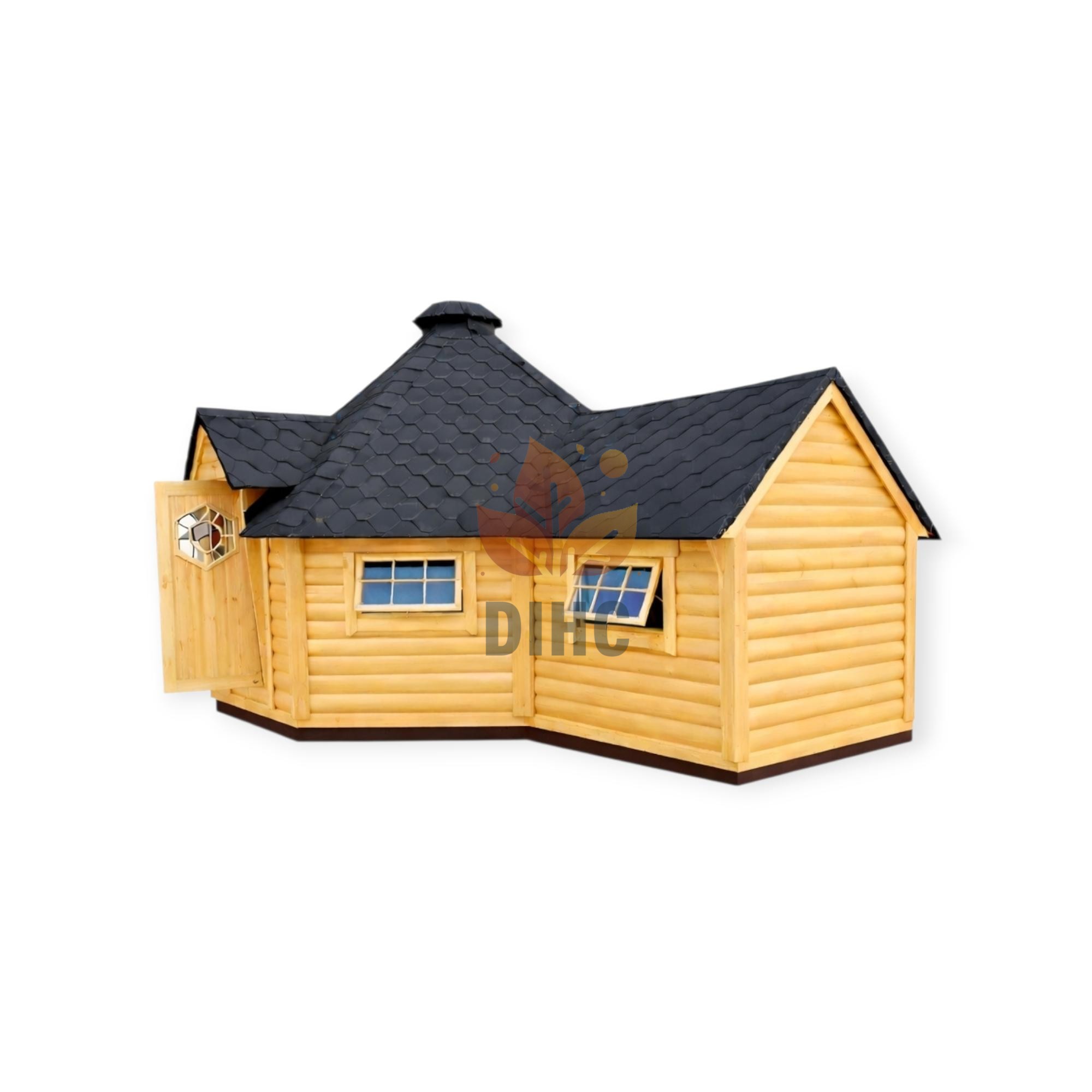 | Grillhytte 16,5 m² med 2,5 m tilbygg | KIT – 3 pakker | 1 pakke: 4,5 × 1,2 × 2,6 m 1 pakke: 3,0 × 1,2 × 2,2 m 1 pakke: 1,0 × 1,2 × 1,3 m |