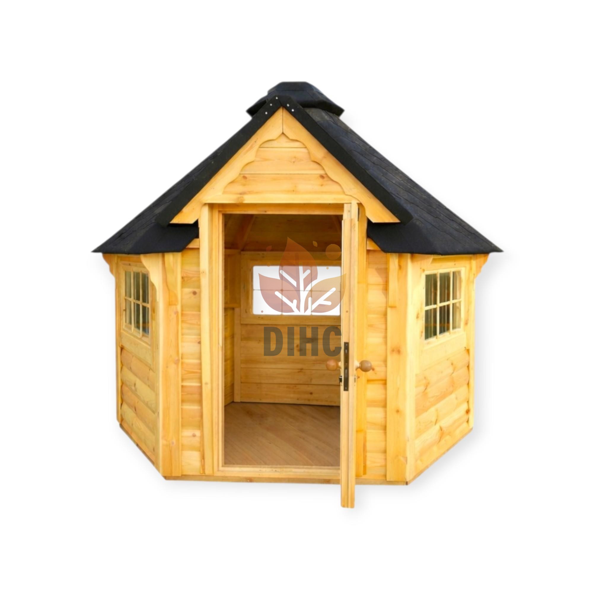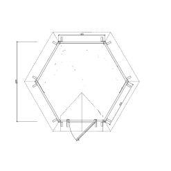 Kompakt, stilfull og godt isolert — denne isolerte campinghytten på 4,5 m² er en sekskantet trehytte som skaper et koselig og praktisk rom i enhver hage, på en campingplass eller ved en fritidsbolig. Hytten er bygget av førsteklasses furu og er utstyrt med et godt isolert tak samt panoramavinduer som kan åpnes, noe som gir komfort hele året. Det smarte sekskantede designet utnytter den innvendige plassen optimalt. Denne campinghytten kan brukes som avslapningsrom, lite hjemmekontor, hyggelig oppholdsrom eller lekehus for barn.