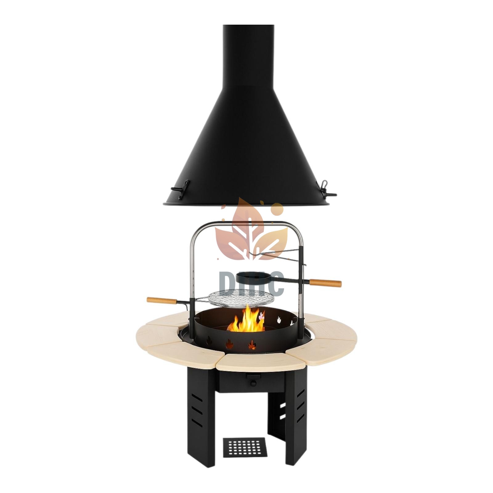 Grill med bord og avtakbar skorstein Inkluderer 2 rister og beskyttelsesgitter rundt bordet