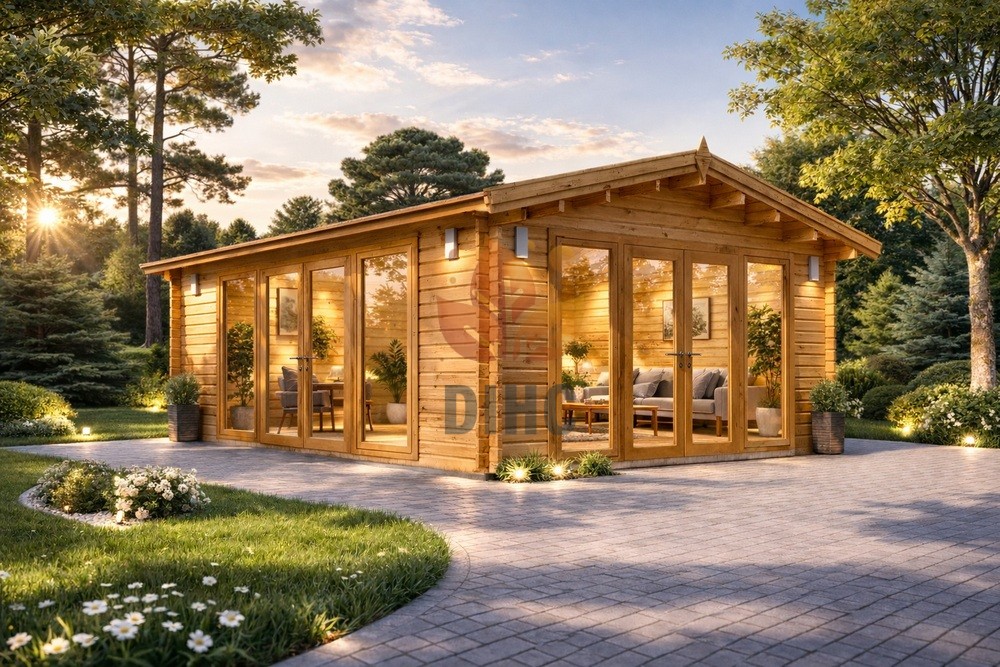 Bli kjent med trehytte MIA – en moderne og lys trehytte på 30 m², produsert av sertifisert nordisk furu eller gran. Med isolerglass, fire høye faste vinduer og brede dobbeltdører er dette et ideelt valg som hjemmekontor, gjesteanneks eller et stilrent fristed i hagen.